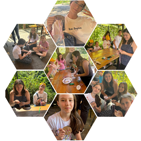 ATELIERUL 3: ”Țesem bijuterii”. Elevii care au participat la acest atelier au învățat să își creeze propriul model de tipar de război de țesut brățări, să țeasă bijuterii și semne de carte din fire textile, folosind drept suport carton reciclat..