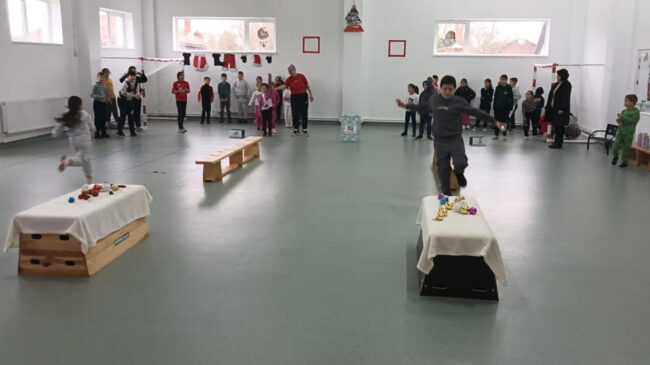 Elevii au fost împărțiți în două echipe (Echipa renilor, Echipa spiridușilor). S-au duelat prin 3 jocuri de stafetă.
